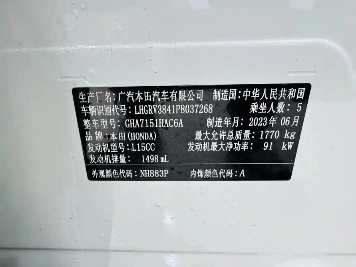 Серийный номер: LHGRV3841P8037268