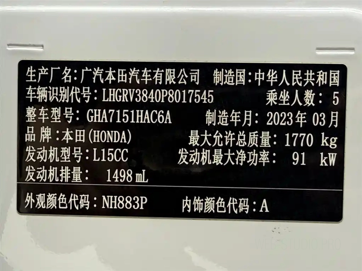 Серийный номер: LHGRV3840P8017545